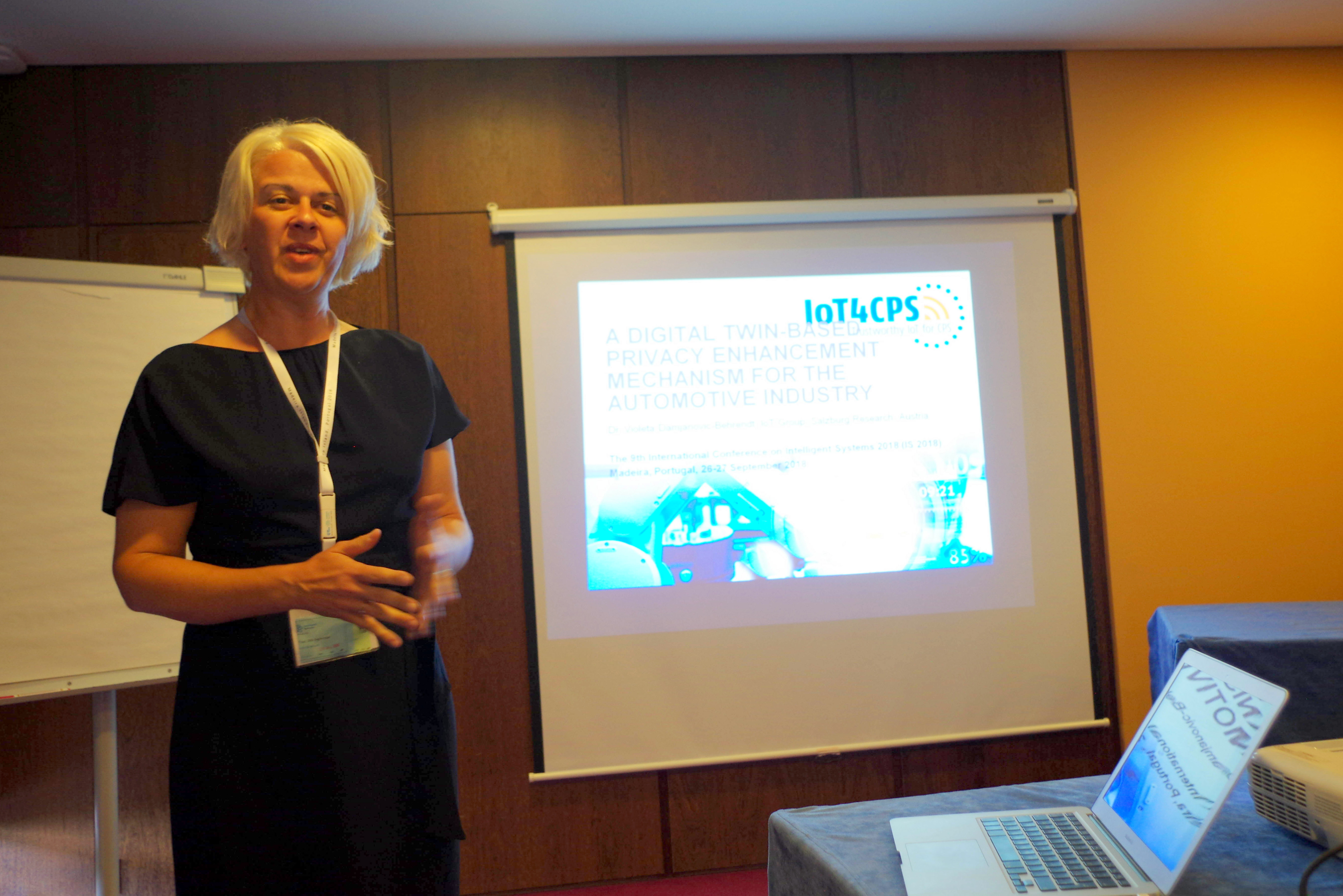 The IoT4CPS project was represented at the 9th International Conference on Intelligent systems “Theory, Research and Innovation in Applications” in Funchal, Madeira, on 25th – 27th September 2018 (http://www.ieee-is2018.com/). The IoT4CPS paper “A Digital Twin-based Privacy Enhancement Mechanism for the Automotive Industry” was presented by Violeta Damjanovic-Behrendt from Salzburg Research, as part of the session on Decision Support Systems.